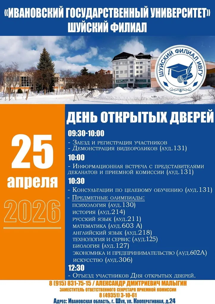 Ивановский государственный университет (Шуйский филиал, день открытых дверей 25.04.2026