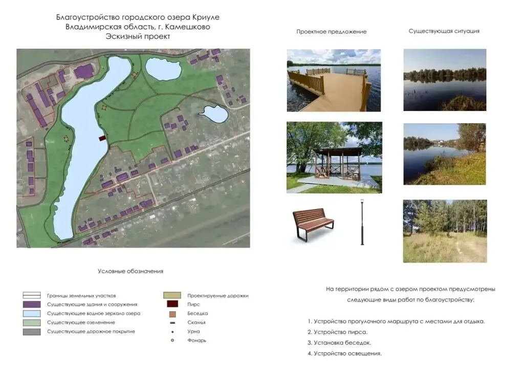 Камешковцам предложено выбрать для благоустройства одну из территорий: берег озера Криуля или общественную территорию, прилегающую к пруду по ул. Володарского, в городе Камешково. Проголосовать можно, пройдя по ссылке: